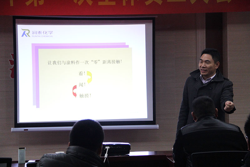本次培訓(xùn)得到了公司高層領(lǐng)導(dǎo)的高度重視,為了更好的提高企業(yè)整體管理水平,滿足企業(yè)戰(zhàn)略需要,提升員工能力,營(yíng)造全員學(xué)習(xí)的氛圍,公司組建了自己的培訓(xùn)師隊(duì)伍。希望通過(guò)自己人培訓(xùn)自己人的思路,有針對(duì)性的進(jìn)行知識(shí)技能的傳授。此次的培訓(xùn)師隊(duì)伍,是潤(rùn)泰化學(xué)分管營(yíng)銷、技術(shù)、行政的副總經(jīng)理張高鋒親自帶隊(duì),培訓(xùn)的主要內(nèi)容包括涂料助劑的生產(chǎn)工藝、檢測(cè)標(biāo)準(zhǔn)、分析及用途、技術(shù)服務(wù)等多方面的內(nèi)容,并讓培訓(xùn)的全員親自在公司四樓的實(shí)驗(yàn)室操作與施工內(nèi)、外墻漆的實(shí)驗(yàn)。